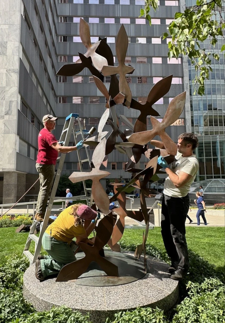 KCI Conservation is a professional art conservation firm that specializes in the treatment and care of sculpture and objects. We maintain a beautifully equipped conservation facility in the Twin Cities. Our work includes carrying out design phase assessments, conservation condition assessments, collections surveys, cultural resource documentation, hands-on treatment work, art restoration, and historic remediation projects. The diverse repertoire of artworks treated by KCI includes public art, traditional sculpture, contemporary art, decorative arts objects, ancient artifacts, non-Western and Indigenous cultural heritage objects, historic artifacts, monuments, fountains, mosaics, multi-media art, kinetic art, and electronic media art. We have treated objects made from stone, masonry, concrete, metals, ceramic tile, terracotta, wood, plaster, terrazzo, linoleum, glass, bone, paper, plastics and resins, wax, botanical materials and more. However, we have become especially well known and respected for the conservation of modern and contemporary art, as well as outdoor sculpture and public art.